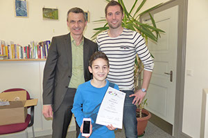 Maxim mit Schulleiter Gorgas und Physiklehrer Hugenschmidt